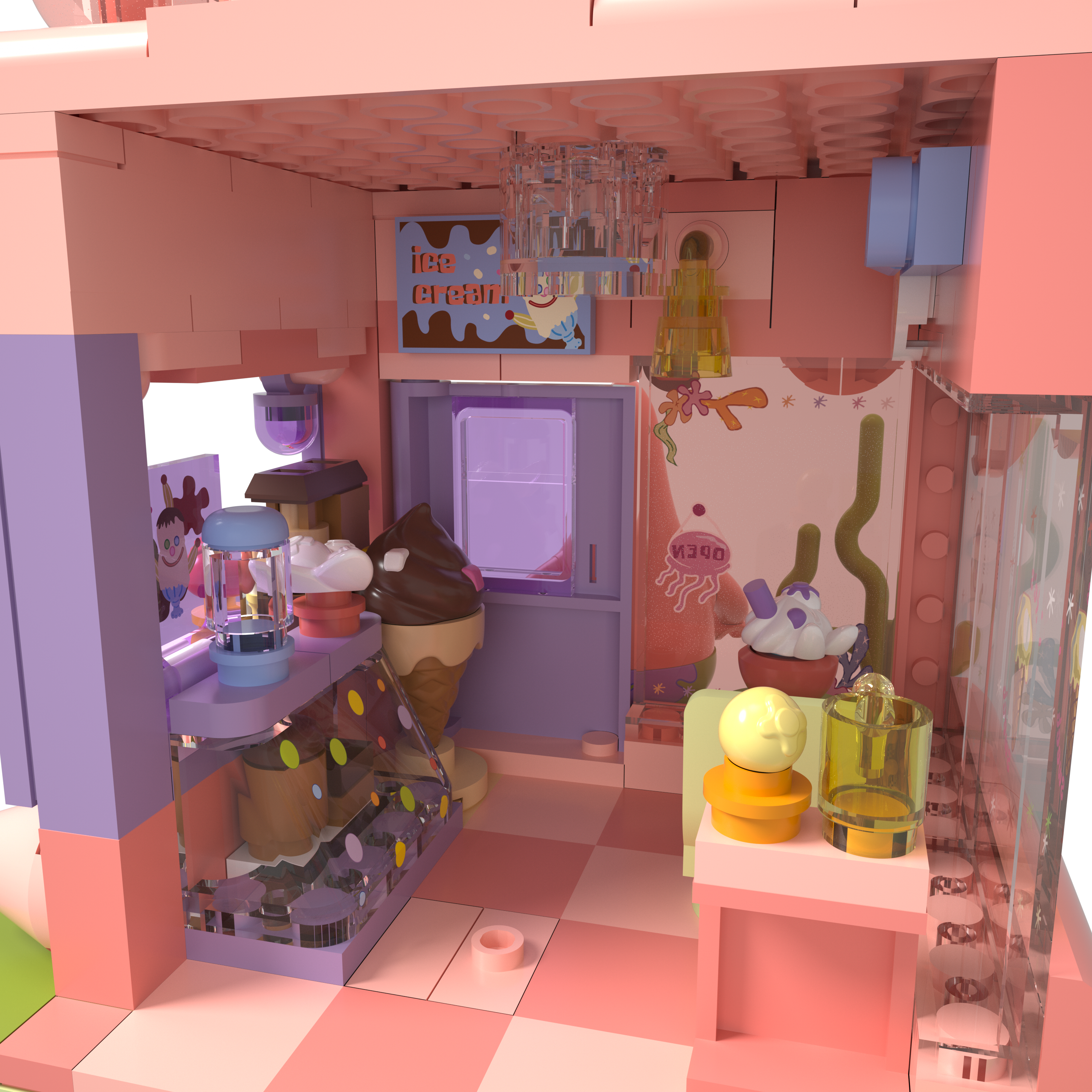 Step into a pastel dreamscape with the Dreamy Street Series – Sweet Star Dream (Patrick Version). This pink-toned dessert shop is full of whimsy and joy, perfectly reflecting Patrick Star’s carefree and imaginative world.