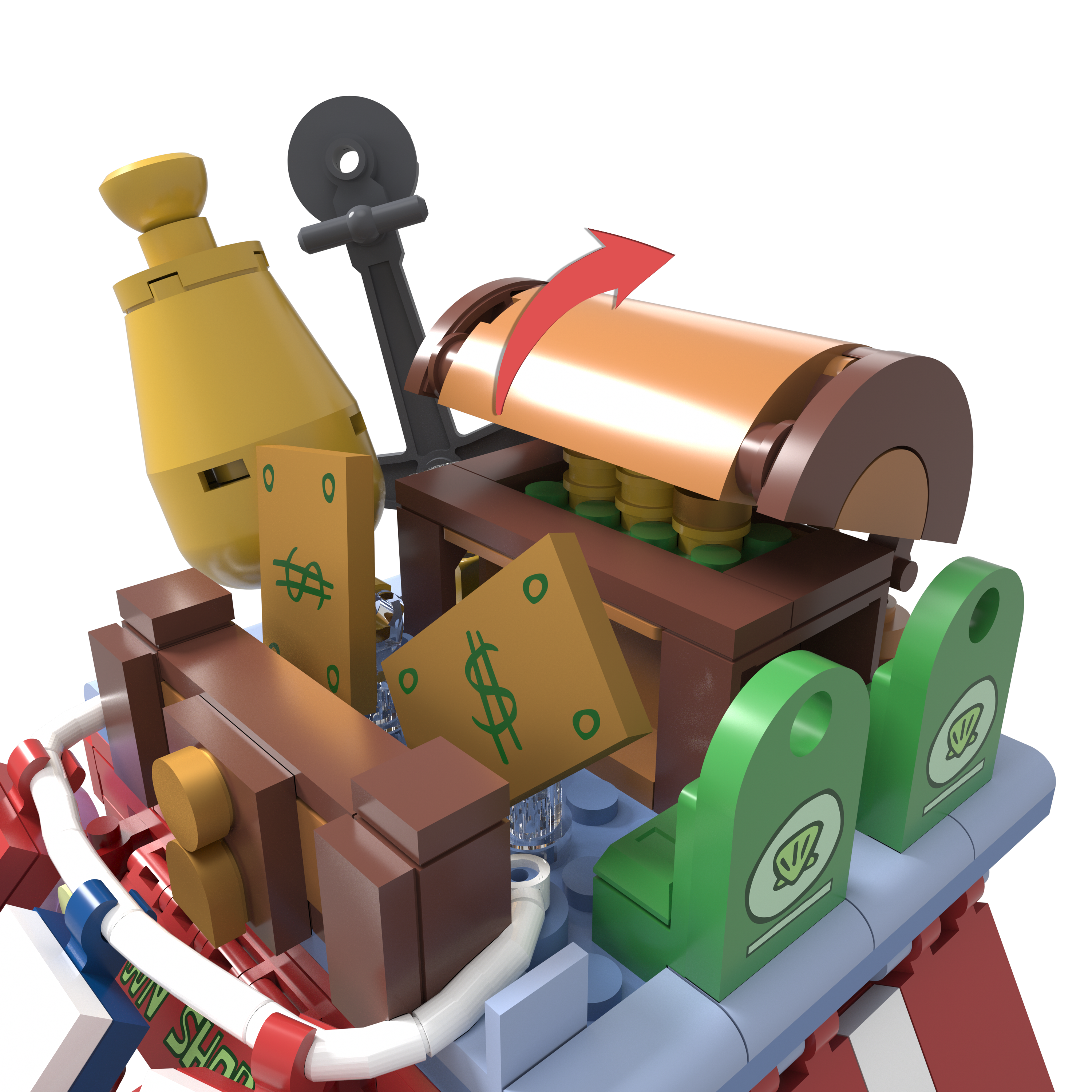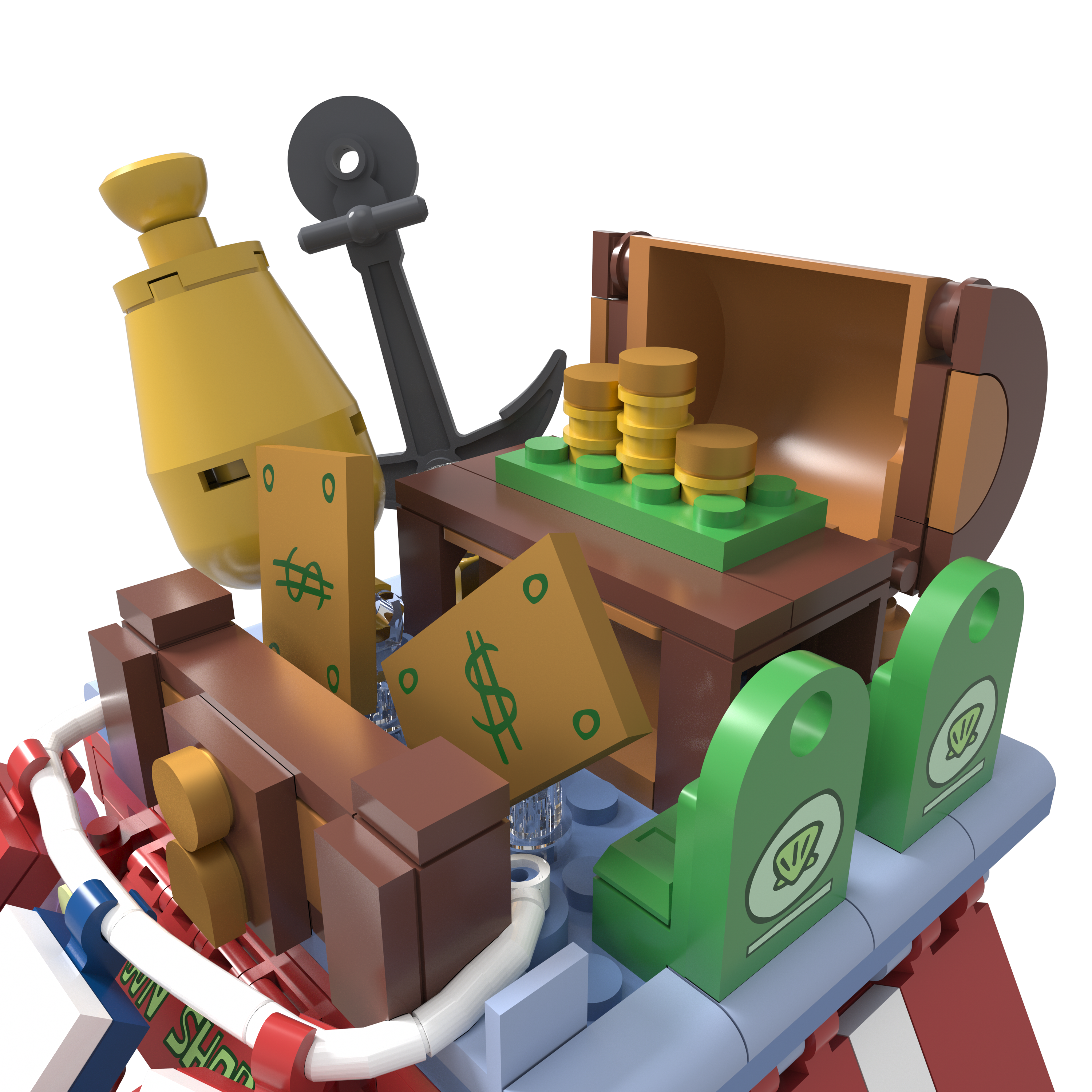 Step into the world of treasure and temptation with the Dreamy Street Series – Rolling in Money (Mr. Krabs Version). This vibrant seafood shop brings Mr. Krabs’s love for riches to life in miniature, wrapped in red, gold, and nautical flair.