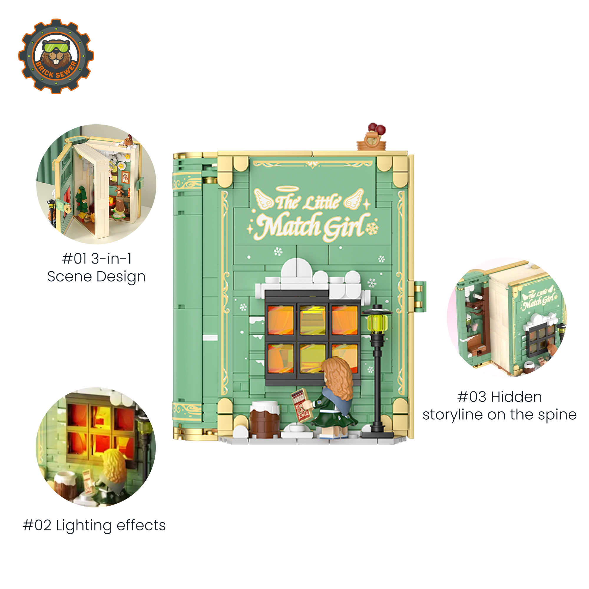 Ignite a spark of magic with Wishing Matchstick, a heartwarming 3D pop-up book inspired by the beloved tale The Little Match Girl. This intricately designed brick-built book unfolds into three beautifully detailed scenes, each capturing a moment of hope, warmth, and dreams amidst a snowy night.