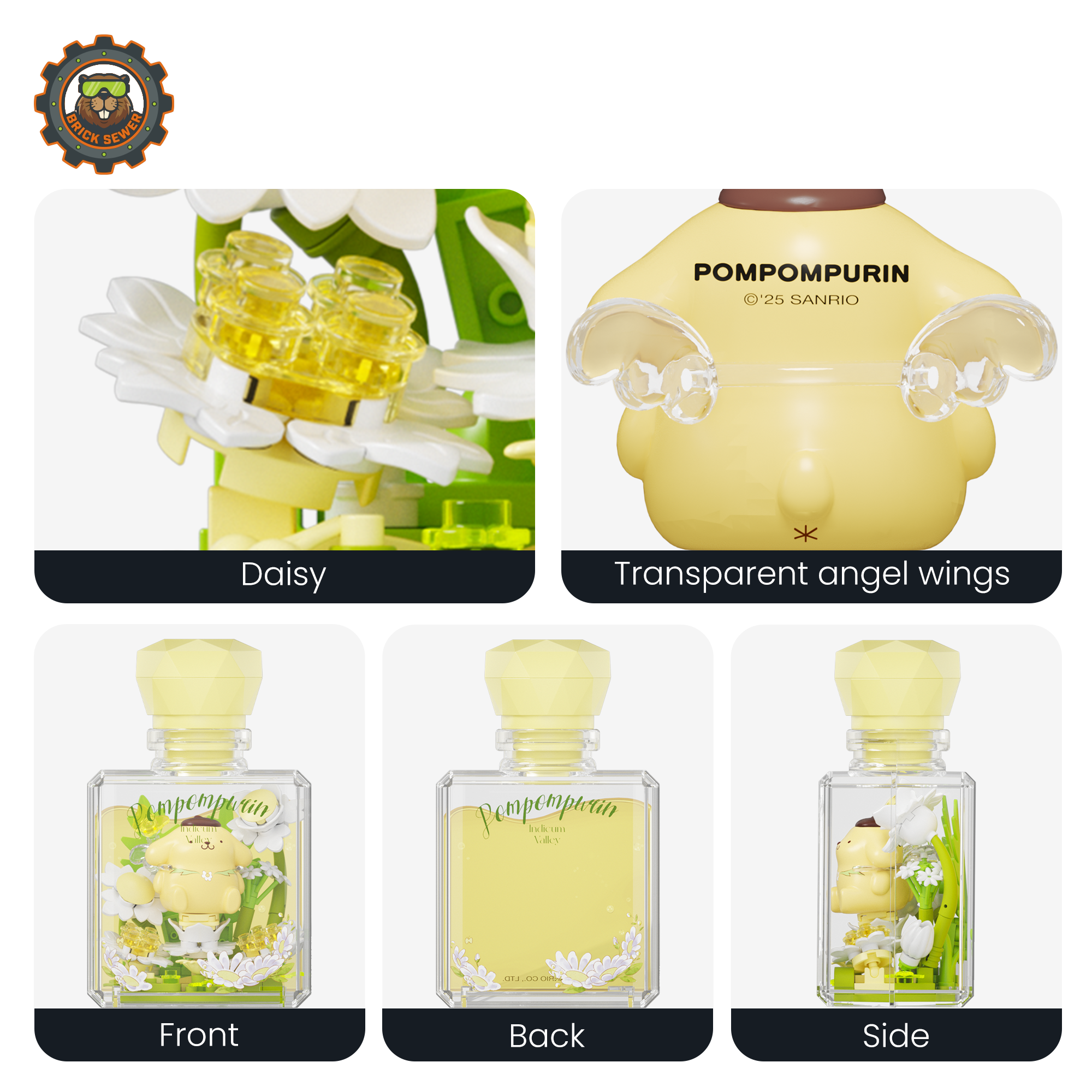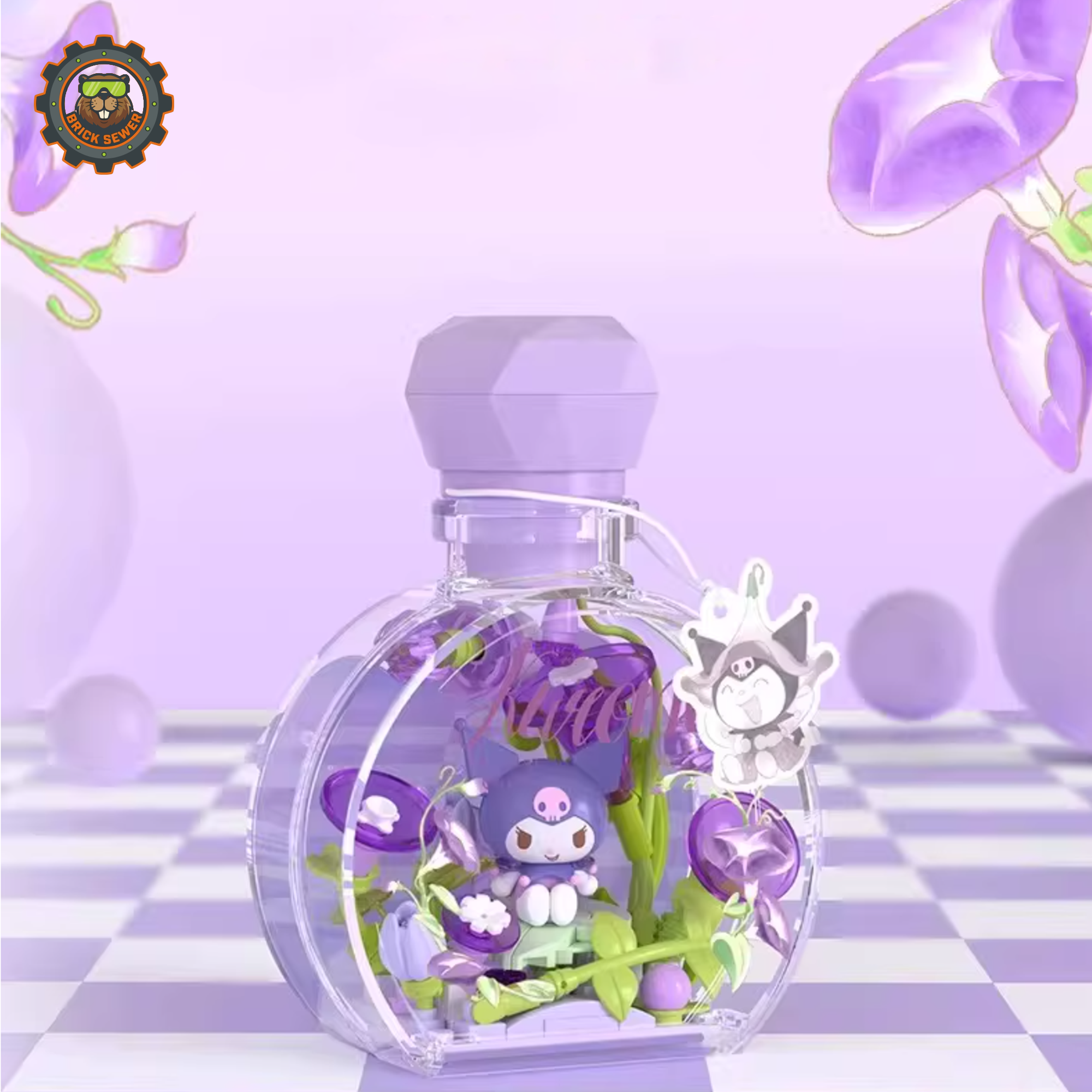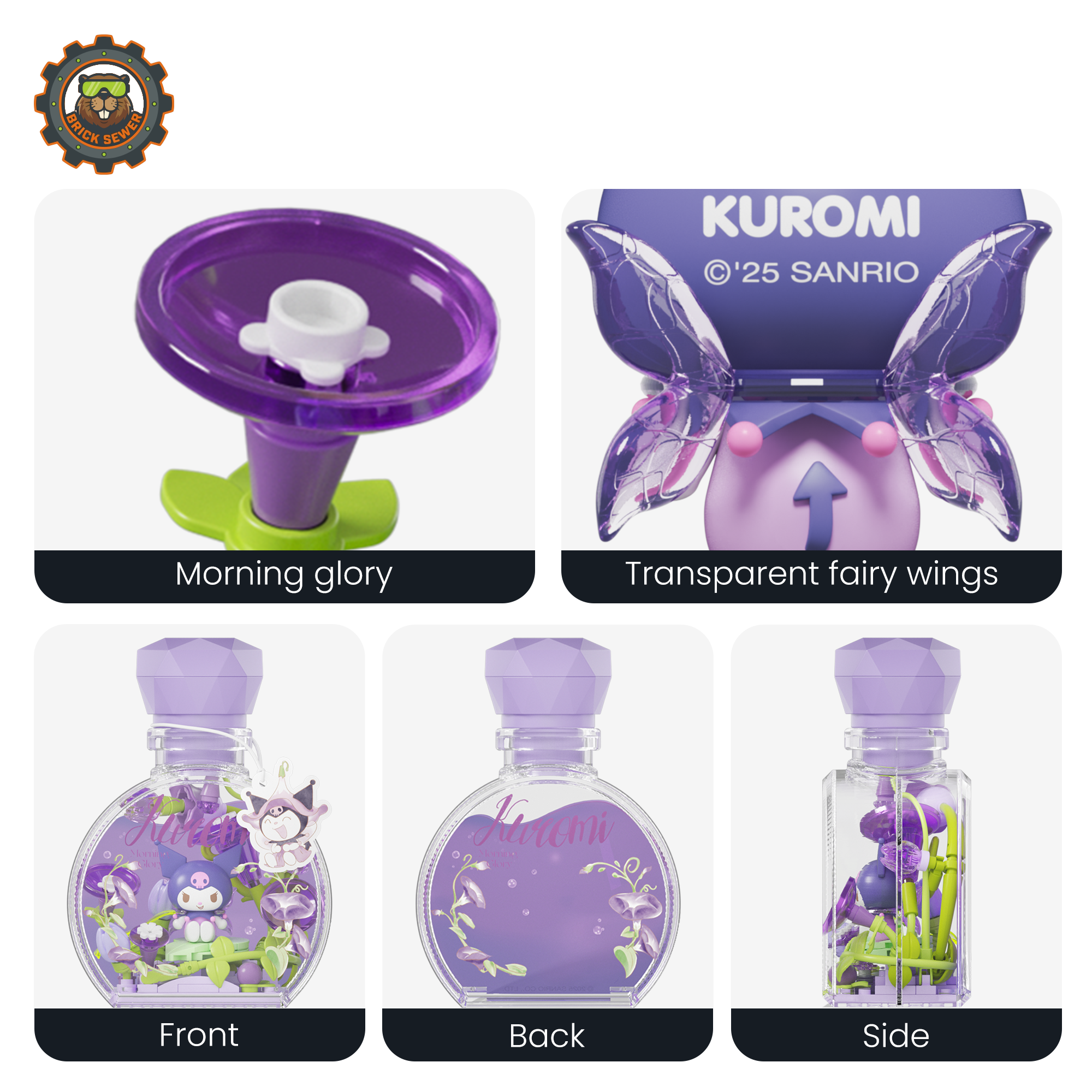 - Decorative flowers and matching Sanrio figure inside each bottle