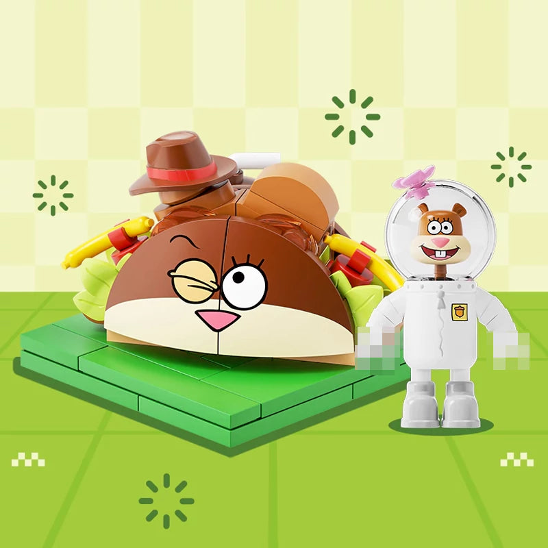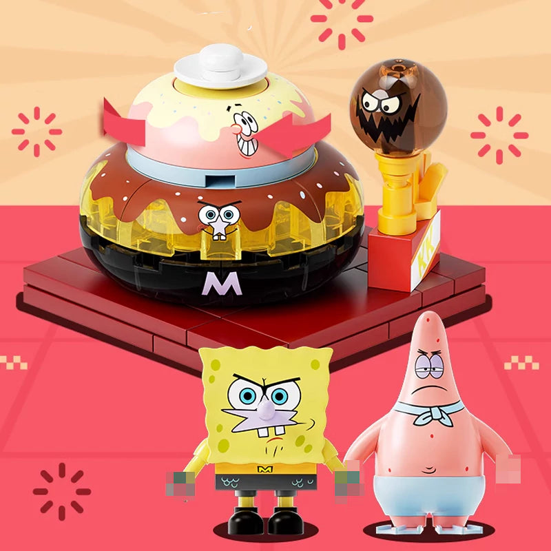 Pieces: a set:622± || SpongeBob SquarePants:93± || Patrick Star:76± || Captain Eugene H:91± || Gary the Snail:76± || Squidward Tentacles:100± || Sandy Cheeks:102± || Material: ABS Plastic || Ages: 6+ || Contains hidden items || The original box as the outer packaging, and it does not apply to any after-sales service.