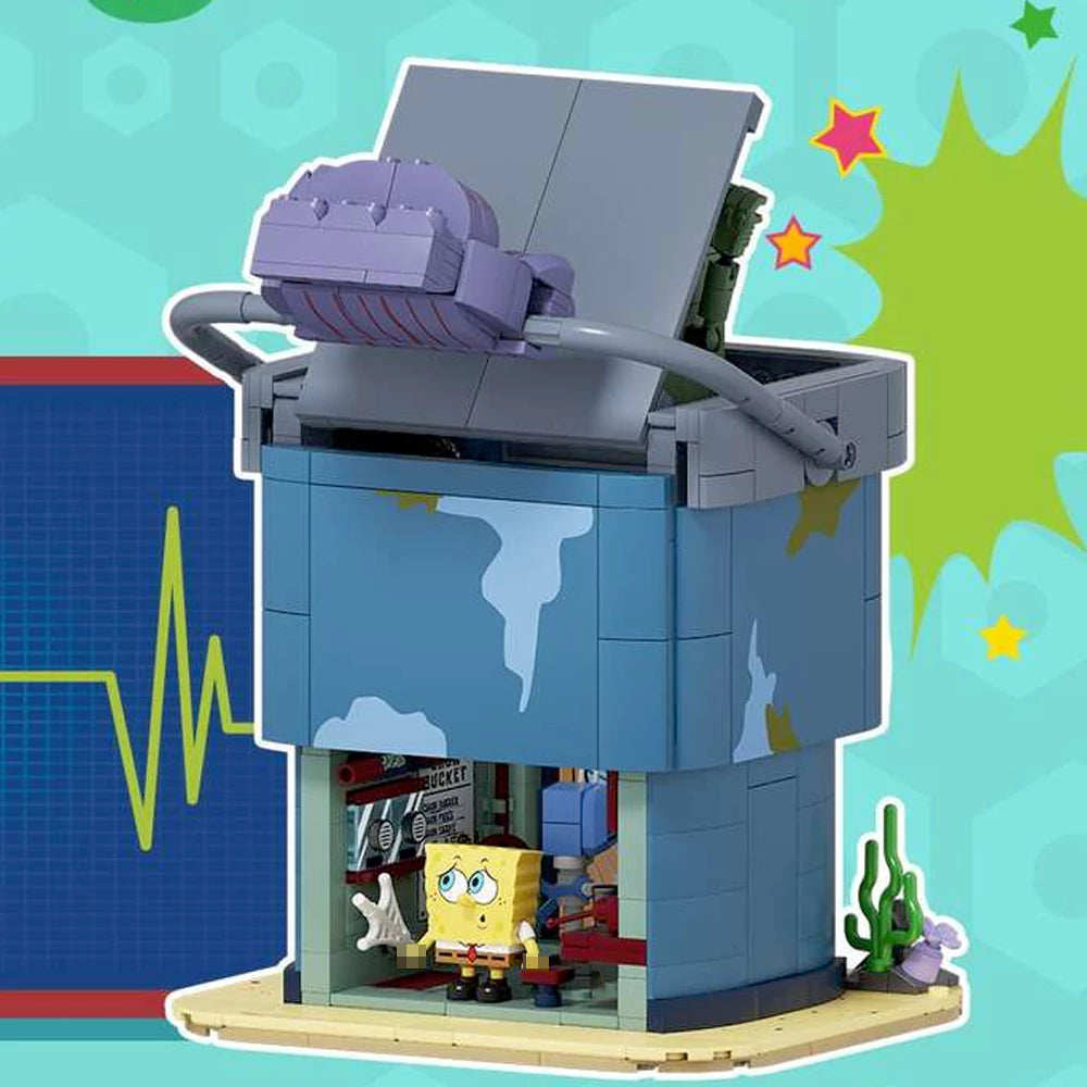 Enter the world of Spongebob Squarepants and bring Plankton's Chum Bucket to life with the AREA-X Plankton's Chum Bucket set. This LEGO MOC Spongebob set lets you construct the iconic lair of the mischievous Plankton, where he plans his endless schemes to steal the Krabby Patty secret formula.