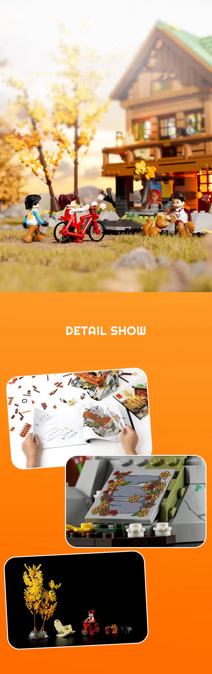 Discover the charm of the Funwhole F9035 Mountain Hut, a beautifully designed modular building set featuring over 2,255 pieces. This cozy alpine retreat includes four detailed minifigures, two adorable squirrels, and a variety of fun small features. A vibrant tree with yellow and orange leaves adds a warm autumn touch. Whether you're a fan of Funwhole bricks or exploring the new LumiBricks line, this illuminated Funwhole Berghütte is a must-have addition to your building collection.